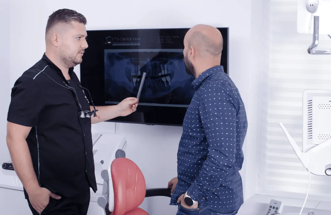 Totul începe cu o consultație, în care realizăm radiografii, scanare intraorală și o analiză digitală completă a maxilarului.