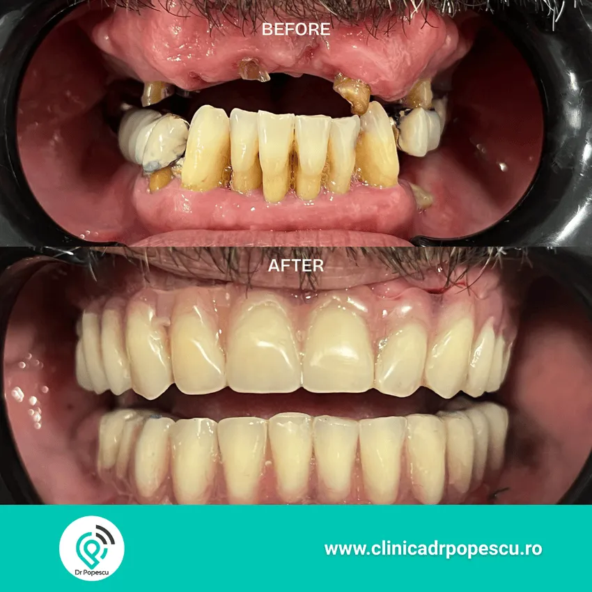 La Clinica Dr. Popescu combinăm experiența chirurgului implantolog cu tehnologia digitală 3D pentru a reconstrui complet o arcadă dentară, în mod sigur, fără durere și fără să rămâi nicio zi fără dinți.