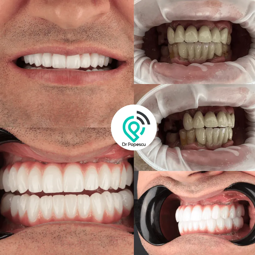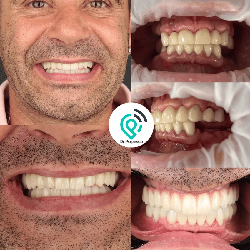 La Clinica Dr. Popescu îți oferim o reabilitare fixă pe 4 - 6 implanturi premium, realizată cu tehnologie digitală 3D, dinți provizorii ficși în 48 de ore și lucrare finală estetică, durabilă și perfect adaptată fizionomiei tale.